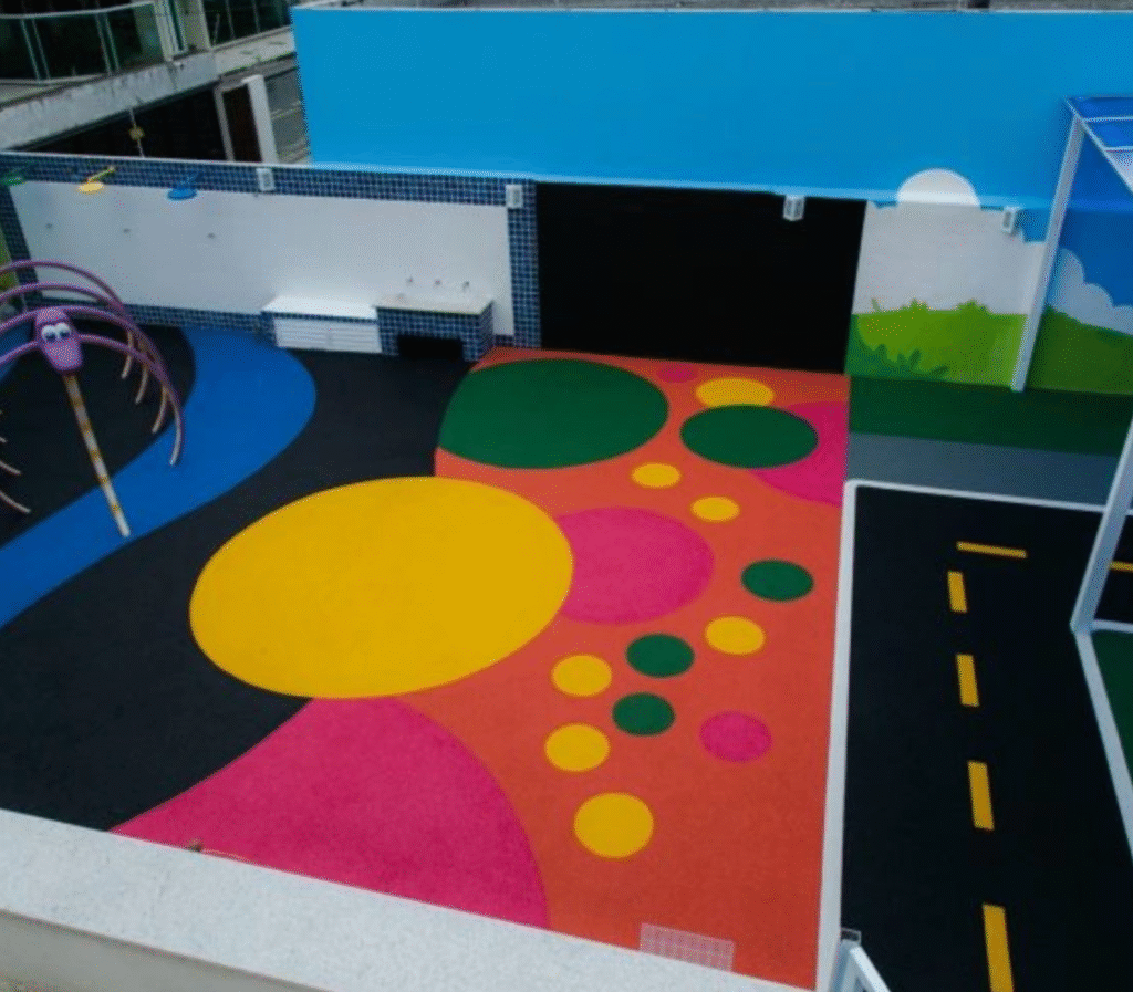 A instalação de um piso emborrachado em um playground é fundamental para garantir a segurança e o conforto das crianças durante as brincadeiras.