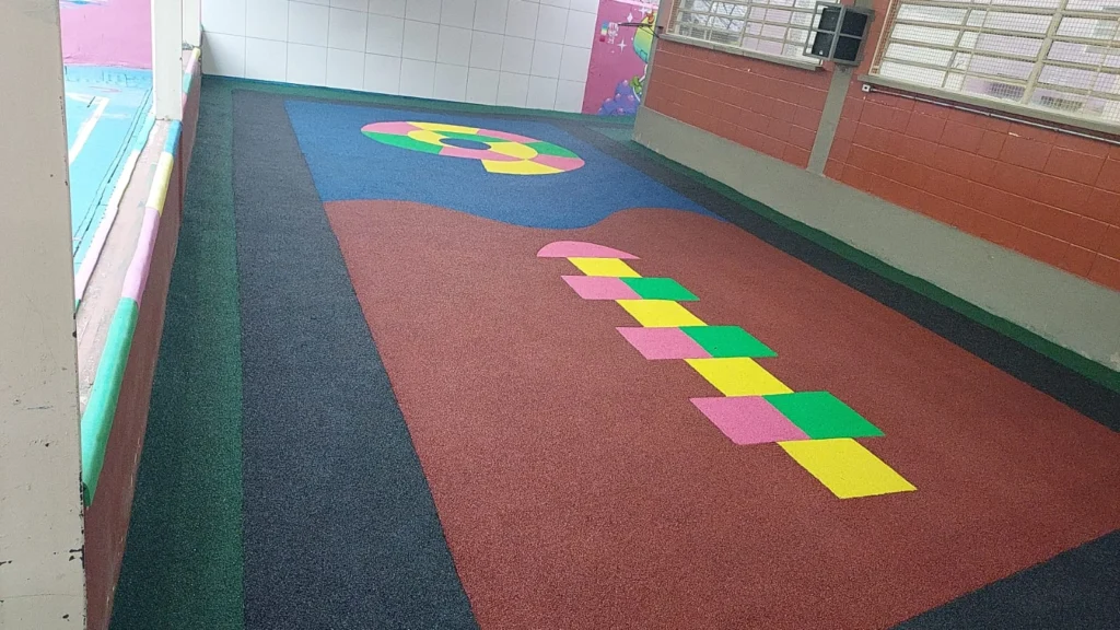 Piso emborrachado Play 15 garante segurança e conforto em playgrounds, escolas e condomínios, com alta durabilidade e fácil instalação.