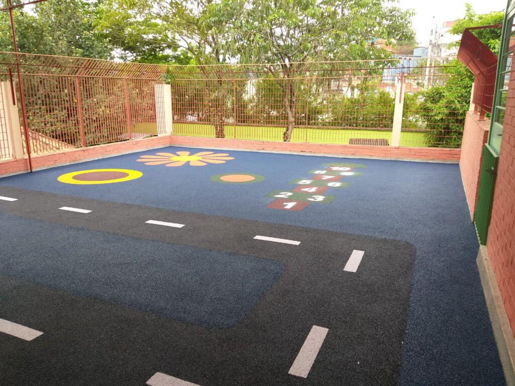 Piso emborrachado Monolítico Flex SBR garante segurança, durabilidade e personalização em playgrounds, escolas e condomínios.