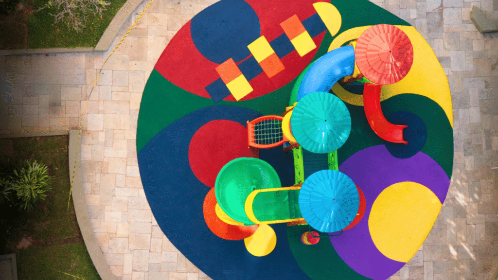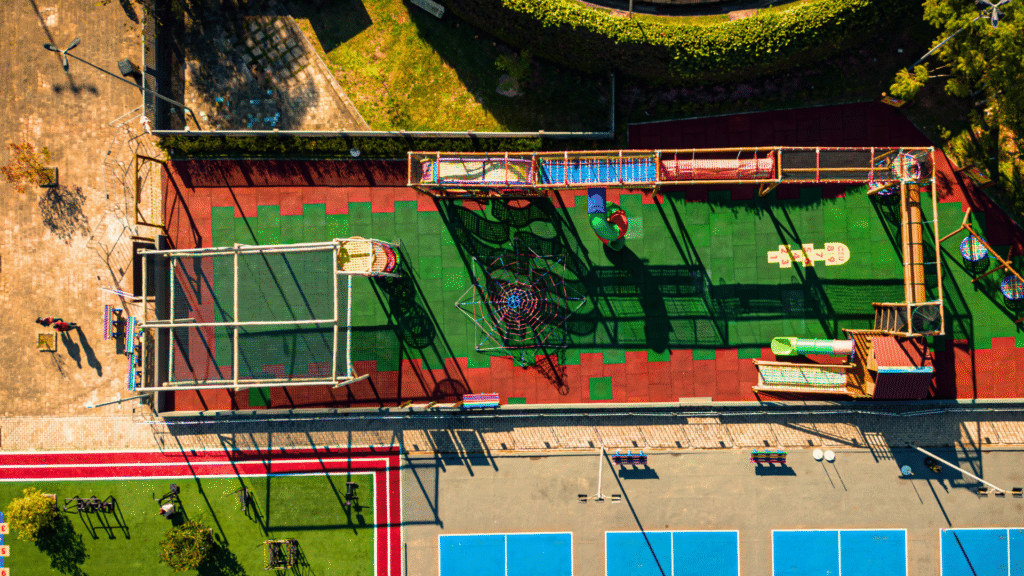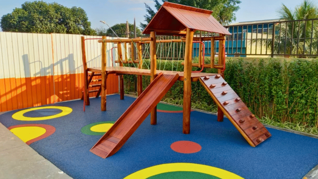 O piso monolítico EPDM oferece um perfeito acabamento e permite a criação de desenhos, layouts e personalizações.